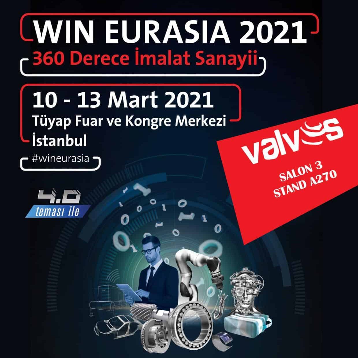 6 ticari fuarın bir araya geldiği WIN EURASIA kapsamında, katılımcılar ve ziyaretçiler 360 derece imalat sanayini teşhir ve tecrübe etmek için benzersiz bir fırsata sahip olacak. WIN EURASIA, sac işlemeden metal şekillendirme teknolojilerine, otomasyon hizmetlerinden elektrik ve elektronik ekipmanlara, hidrolik ve pnömatik hizmetlerden tesis içi lojistiğe kadar geleceğin fabrikaları için ihtiyaç duyulan tüm eko-sistemi bir araya getiriyor.